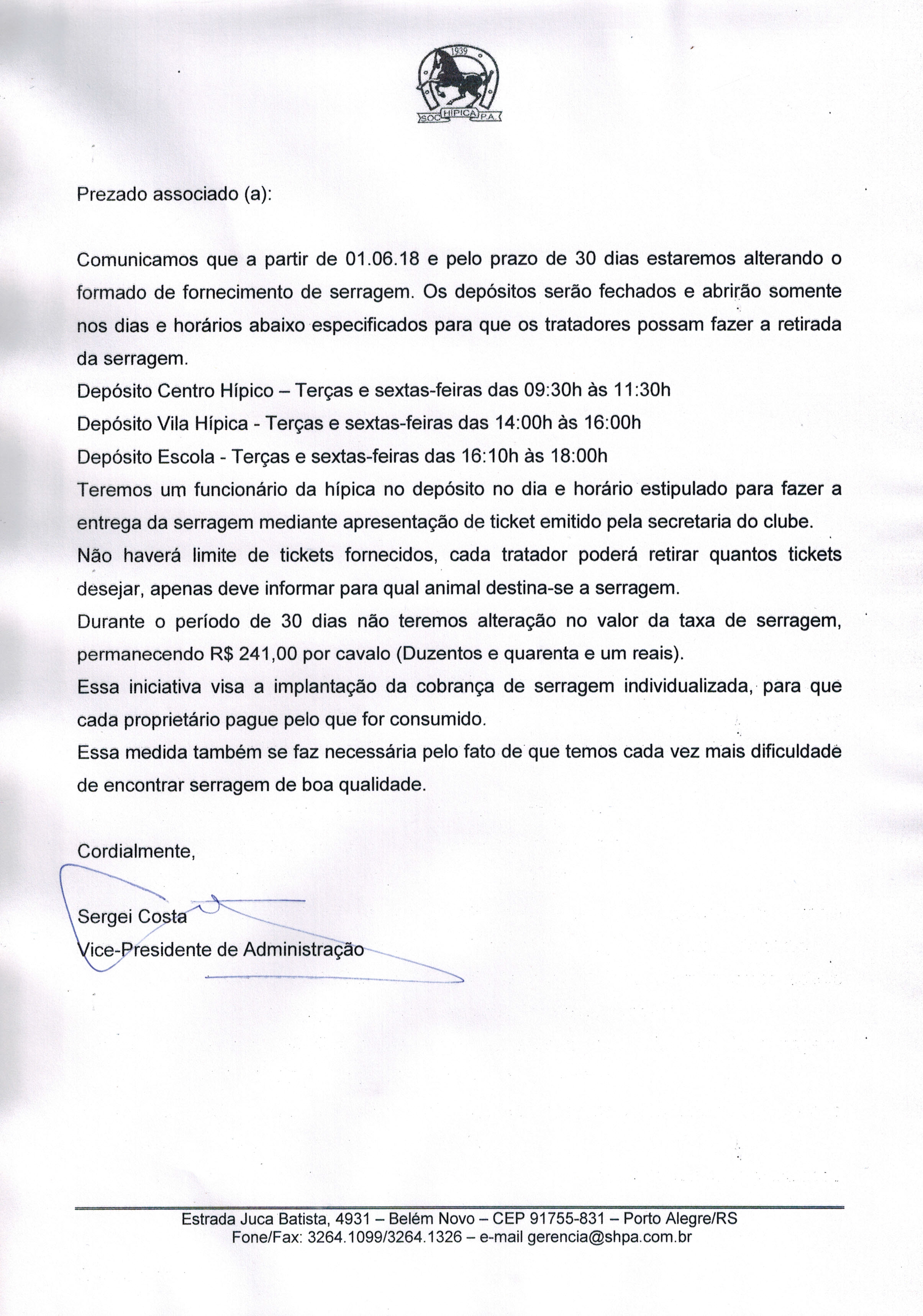 Comunicamos que a partir de 01/06/2018 e pelo prazo de 30 dias estaremos alterando o formato de fornecimento de serragem. Os depósitos serão fechados e abrirão somente nos dias e horários especificados. Post publicado:16 de maio de 2018