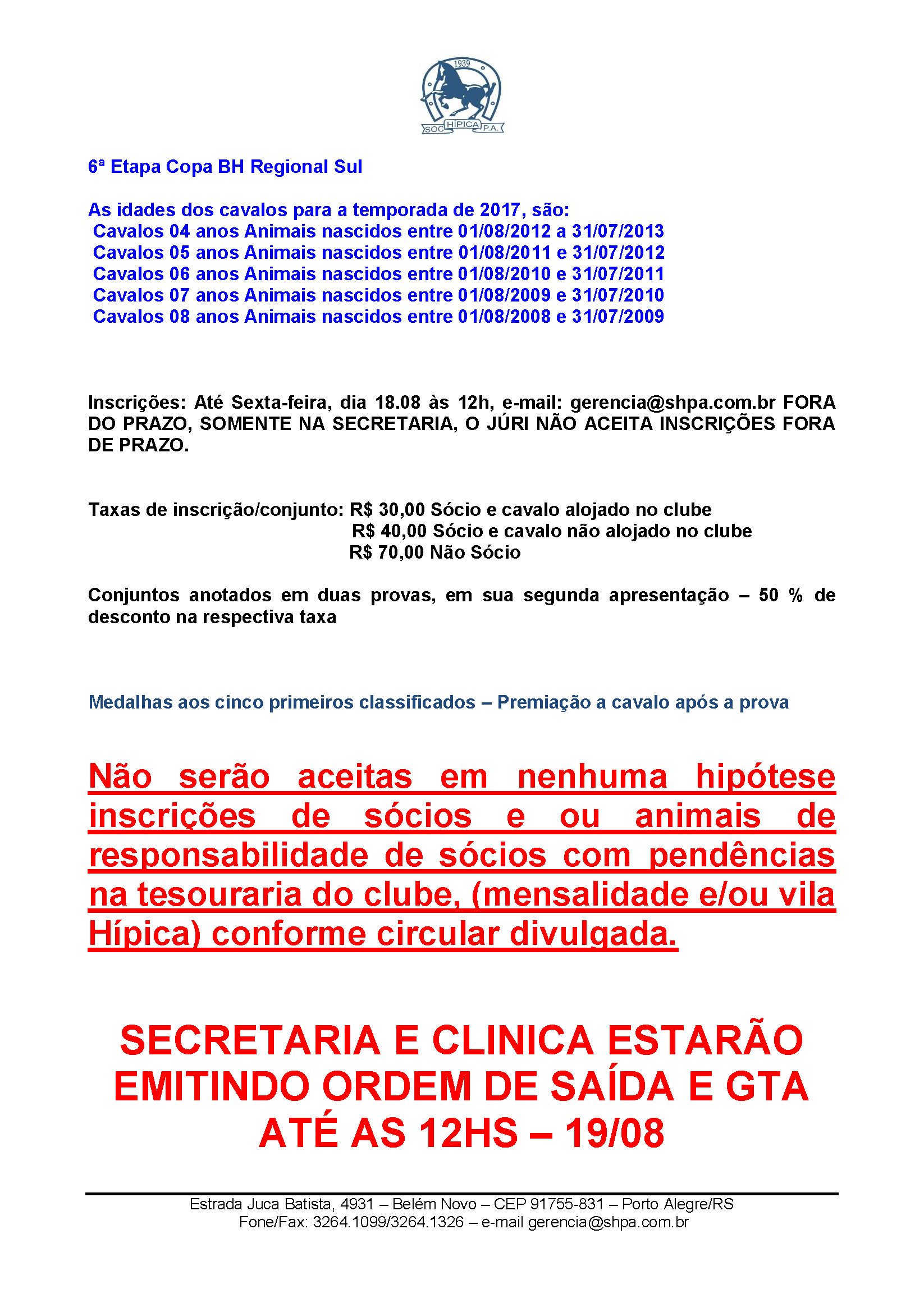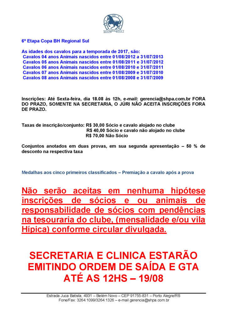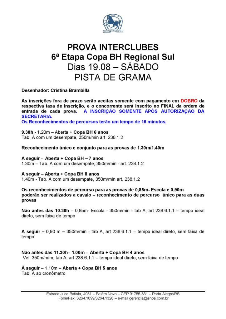 Confira a programação da prova Interclubes + 6ª etapa Copa BH, que será realizada dia 19/AGO, na Pista de Grama. Post publicado:14 de agosto de 2017