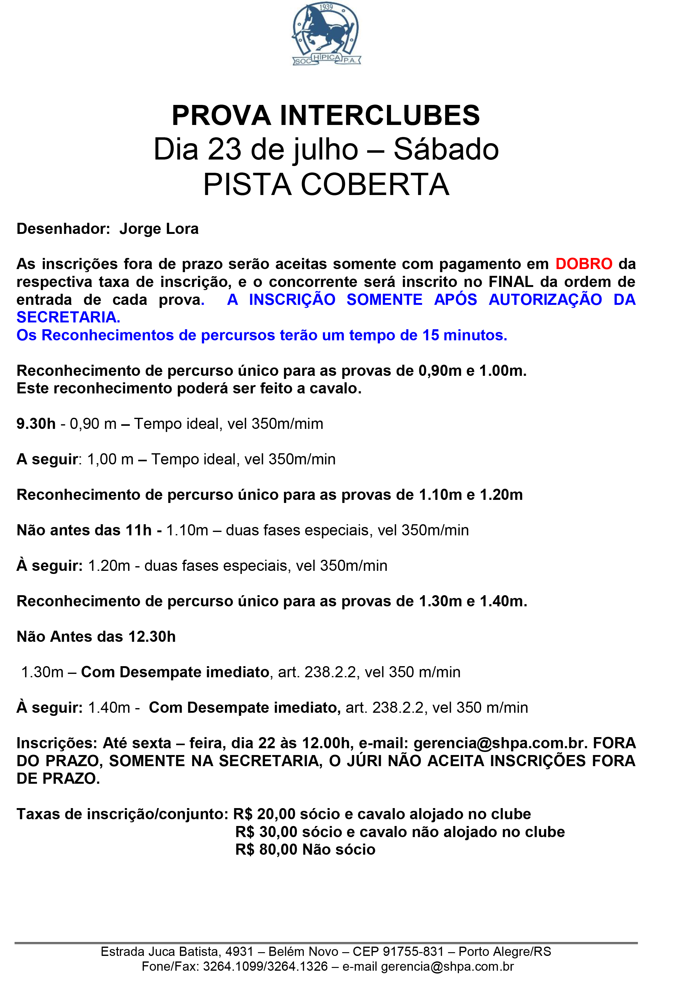 • Prova Interclubes de SALTO: Sábado, 06 de dezembro a partir das 9h (pista de grama). 29 de novembro de 2025
