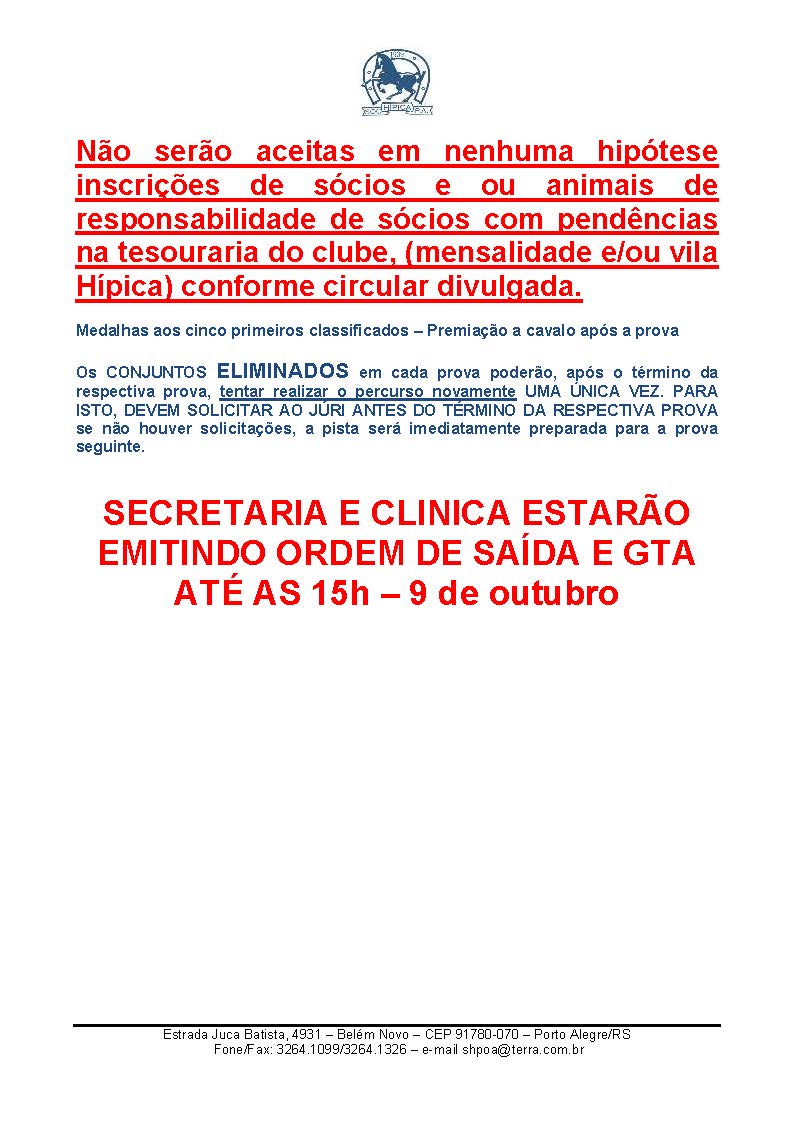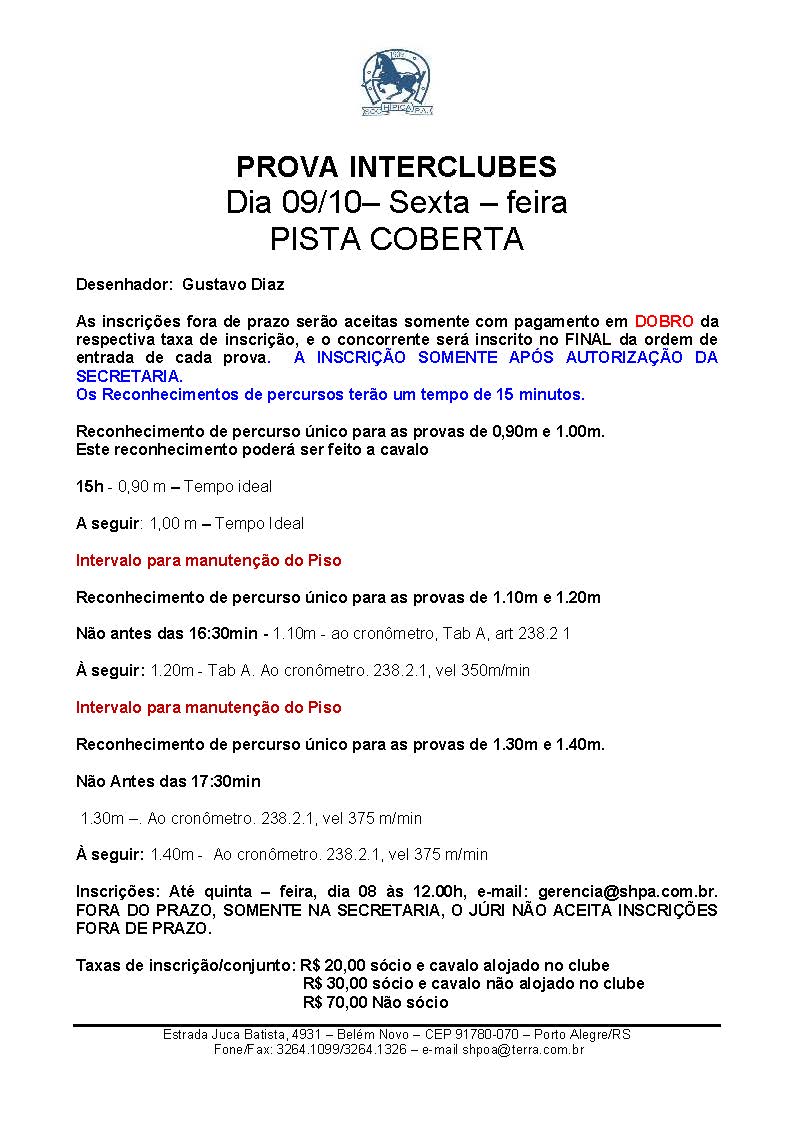 Prova Interclubes: SEXTA-FEIRA 09/Outubro na Pista Coberta