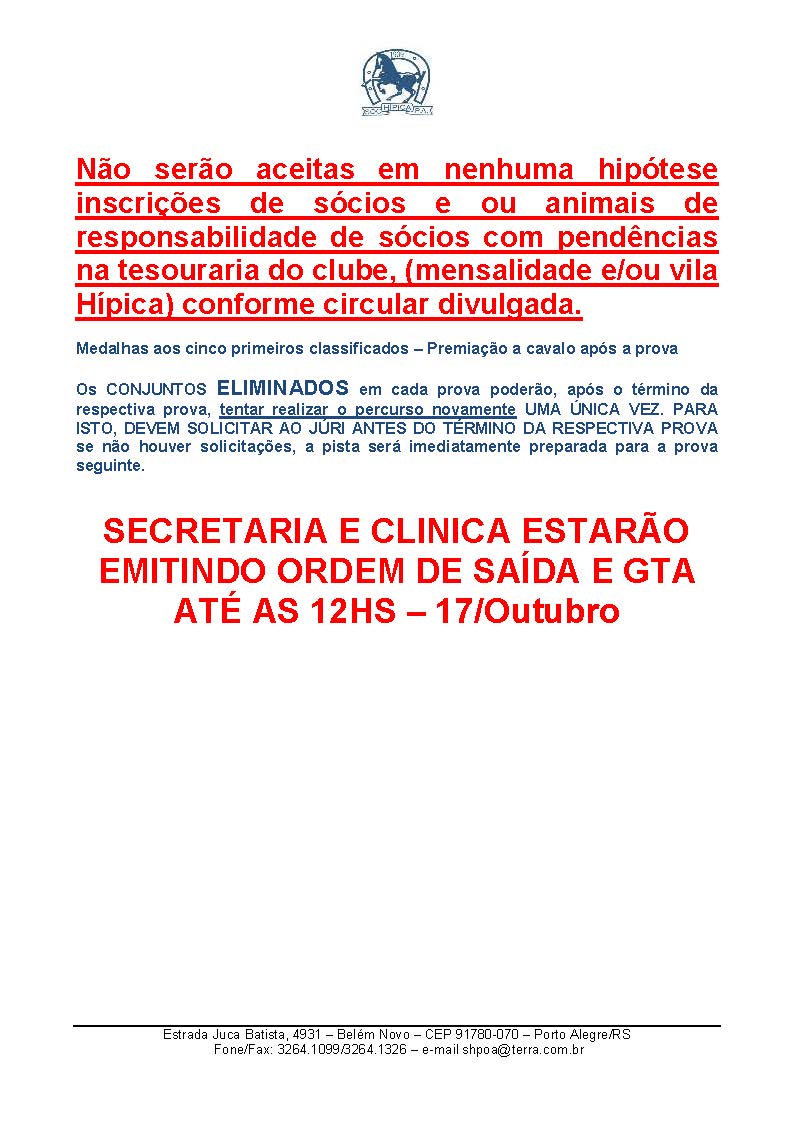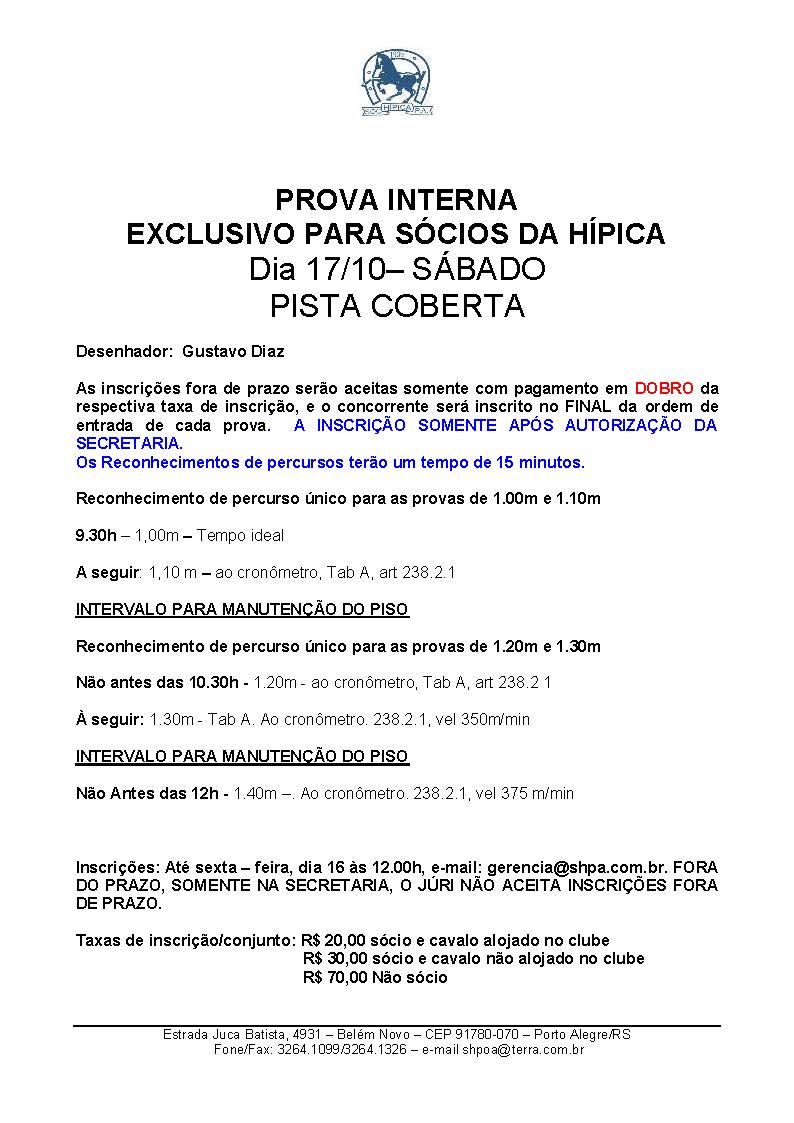 Prova interna EXCLUSIVA PARA SÓCIOS: Sábado, 17/Outubro – Pista Coberta Post publicado:14 de outubro de 2015