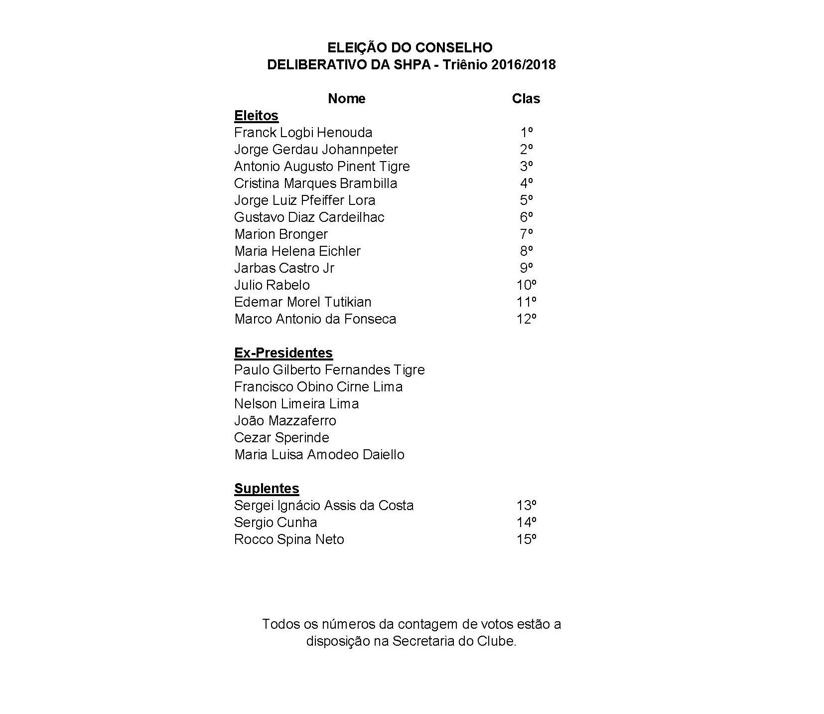 Resultado da eleição para o conselho deliberativo da Sociedade Hípica Porto Alegrense 2016-2018 Post publicado:11 de outubro de 2015